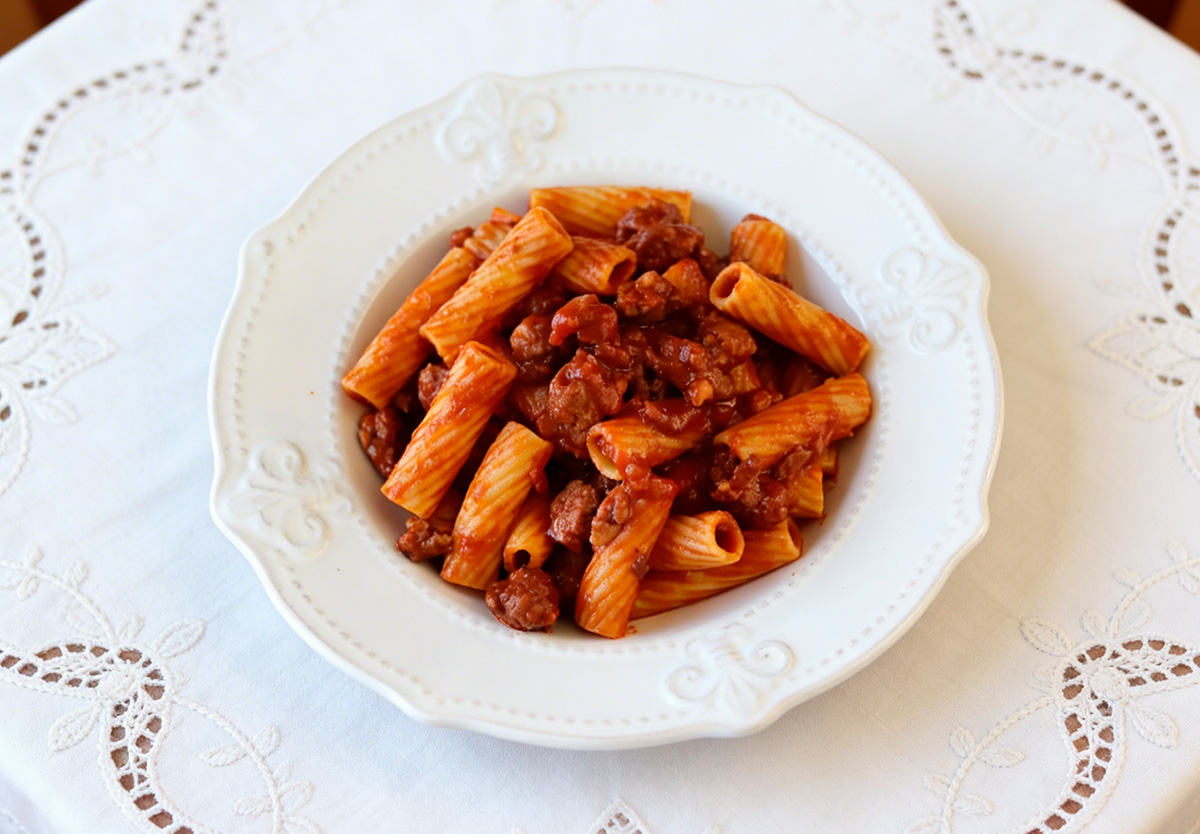 Ragu de salsicha Frankfurt com massa fresca